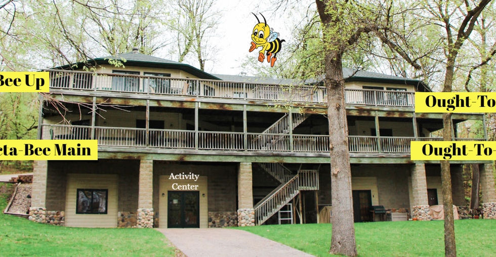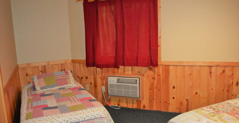 This suit offers 750 square feet of living space, featuring 3 bedrooms and 1 1/2 baths. The interior showcases knotty pine accents and a distinctive octagon-shaped layout. The upper floor boasts a spacious dining/living room, equipped with air conditioning. Outside, there is an expansive wrap-around deck with a BBQ grill included. The property also includes 2 bathrooms. A central foyer separates the Octa-Bee and Ought-to-Bee units, each accessible via a staircase to the upper levels. Both units can be divided into a total of four separate units if desired.